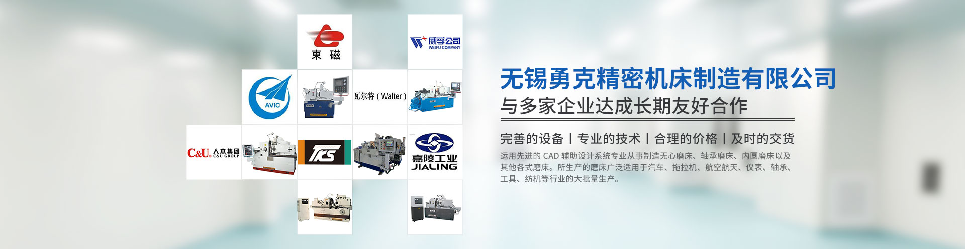無錫勇克精密機床制造有限公司位于美麗的太湖魚米之鄉—無錫。京滬鐵路、新長鐵路、京杭大運河、滬寧、滬宜高速公路、滬寧二級公路的多條交通線橫貫洛社鎮,交通極為發達,為我公司的經濟發展提供了良好的外部環境和極為便利的交通條件。 公司通過不斷自主創新,瞄準國際磨床的先進水平,以提升國內機床行業的技術為己任,推動產品升級換代。得益于機械設計制造的區域優勢、人才優勢,并結合國外高、新、尖技術,運用先進的三維輔助設計系統專業從事制造無心磨床。所生產的磨床廣泛適用于汽車、拖拉機、航空航天、儀表、軸承、工具、紡機等行業的大批量生產?,F已投放市場的有普通無心磨床:M1010B,M1040B,M1050A,M1080B,M1083B,M10100等;另有高精度數控無心磨床:MK1040S,MK5020,MK5030,MK10100,還有寬砂輪數控無心磨床:MK11100,MK10200,MK11200,MK11150,MK11250,產品質量穩定可靠、性能卓越,得到用戶的肯定。